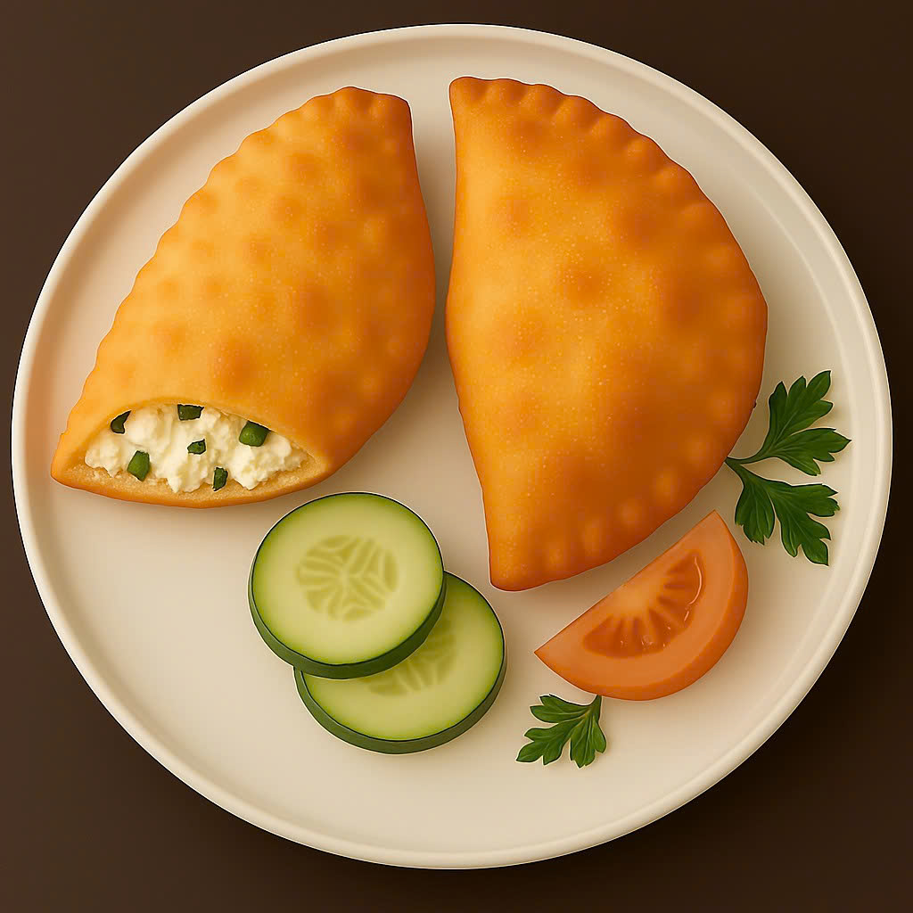 Bánh burek chiên giòn, nhân phô mai feta và rau mùi tây tươi.